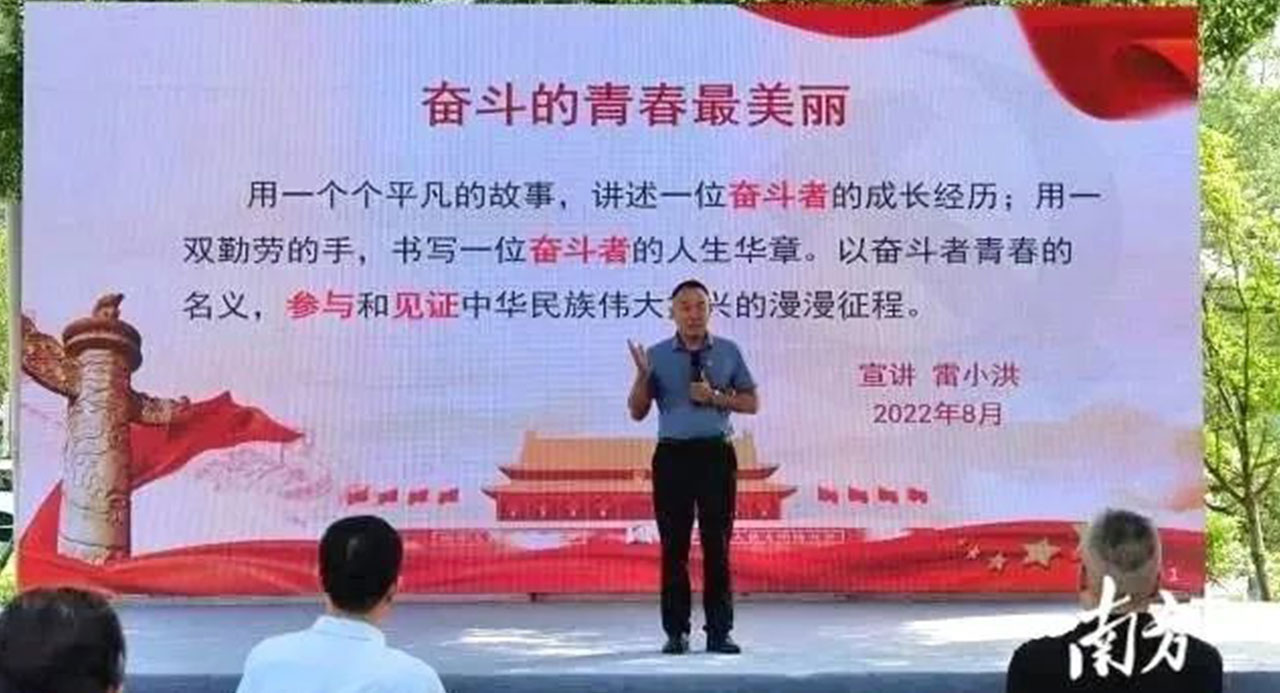从2020年开始担任市级各类宣讲团成员以来,雷小洪的足迹遍布全市8个县(市、区),他的主题宣讲及其个人的励志故事被人民号、中国报道、珠江电视台、羊城晚报、清远电视台、清远日报等各级媒体相继报道。